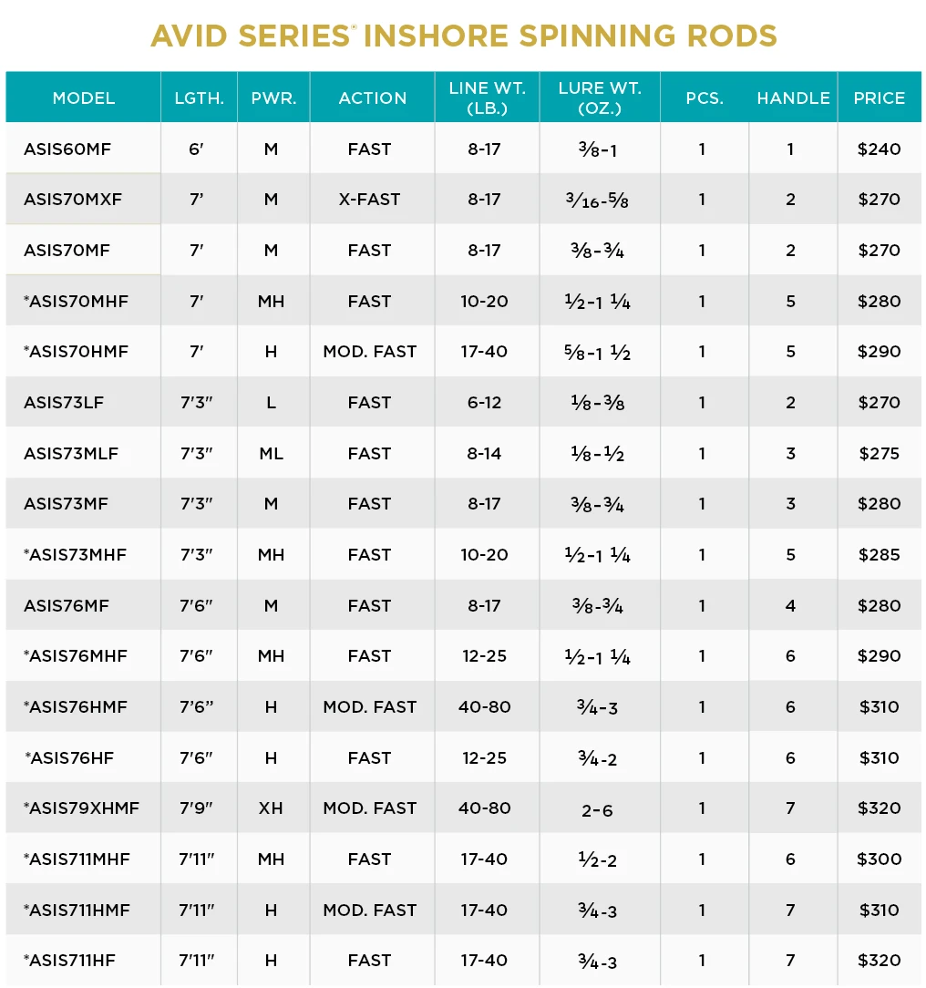 - AVID INSHORE RODS FEATURE PROPRIETARY ST. CROIX ROD TECHNOLOGIES; IPC, ART, TET, FRS