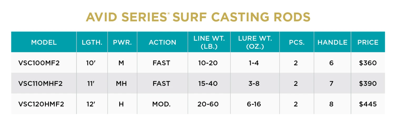- AVID SERIES® SURF CASTING RODS feature: