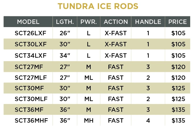 An ice rod built as tough as the frozen winter landscape of the ice belt. A new platform for St. Croix, the Tundra series is a culmination of ice centric features demanded by hardwater anglers. Premium full-cork and split-grip handles, REC Recoil stripper guide, stainless steel running guides, and a coated stainless steel tip-top for the ultimate in durability.