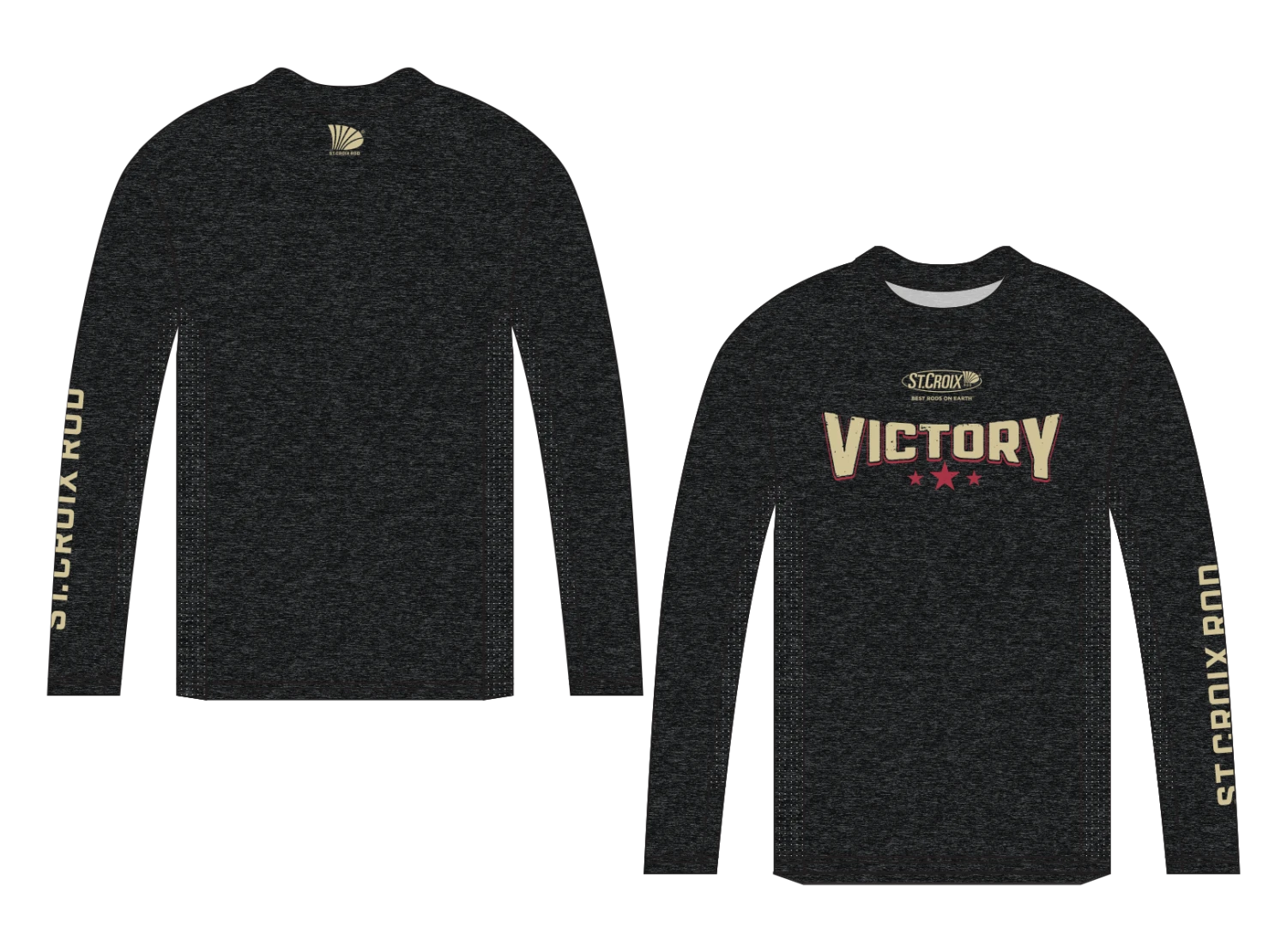 This performance long sleeve is made of 90% polyester/10% spandex for all-day comfort! Technical features include: UPF 50+, side mesh side panels, stain resistant, moisture wicking, and anti-microbial fabric.